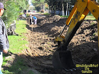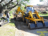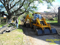 Continúan los trabajos de cordón en la calle Martin Miguel de Güemes, esta vez los operarios a cargo de las obras municipales realizaron la preparación de tierra de la lindante cuadra, es así que la retroexcavadora perteneciente a la maquinaria municipal realiza el trabajo de remoción de tierra y cuneteo de la misma, para después intensificar con la construcción del cordón.